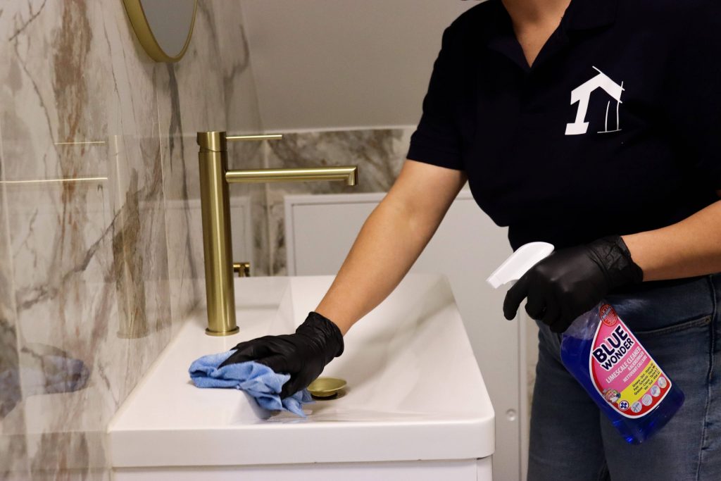 Hygienische Reinigung von Toiletten, Waschräumen und Sanitäranlagen inklusive Auffüllen von Materialien wie Seife und Papier.